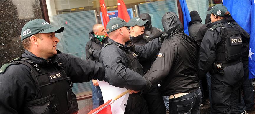 Obama'nın konuşma yaptığı konferans merkezine gelen bir grup protesto gösterisi yapmak istedi. Göstericilere izin vermeyen polis, gruba müdahale etti. Polis yüzlerinde siyah maskeler bulunan gruptan bazı kişileri gözaltına aldı.