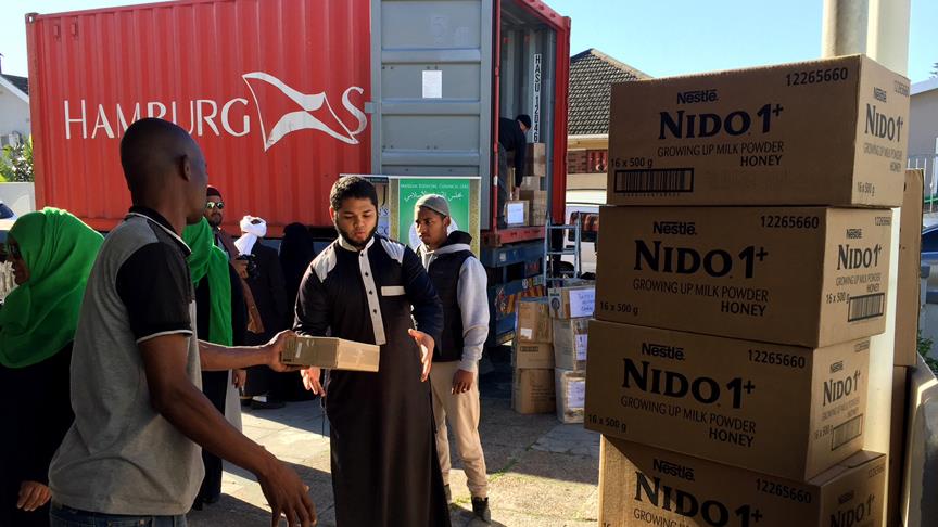 Güney Afrika'da faaliyet gösteren Güney Afrika Müslüman Hukuk Konseyinin (MJC) Kadın Kolları üyeleri tarafından ülkedeki hayırseverlerden toplanan yardım malzemesi, Türkiye'deki Suriyelilere dağıtılmak üzere yola çıkarıldı.