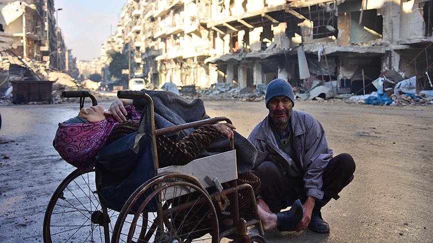 Suriye'de Beşşar Esed rejimi ve destekçilerinin kuşatmasındaki doğu Halep'te, bombardımanda 7 çocuğundan ayrı düşen anne Sabah, son nefesini tekerlekli sandalye üzerinde sokak sokak doktor ararken verdi.