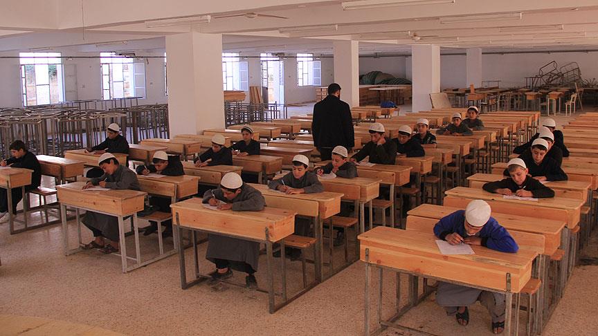 Suriye'nin Halep ilinde din adamı yetiştiren lisede, Fırat Kalkanı Harekatında terör örgütü DEAŞ'tan kurtarıldıktan sonra ilk mezuniyet heyecanı yaşanıyor.