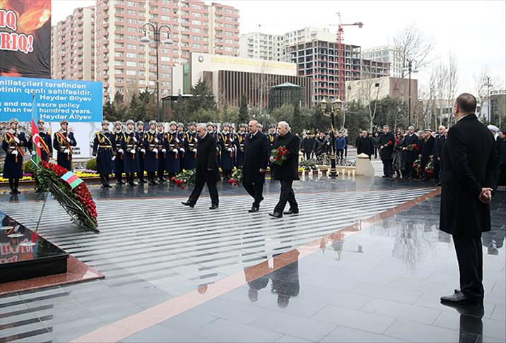 Bakü'deki Hocalı Anıtı'ndaki törene Cumhurbaşkanı İlham Aliyev ve Dışişleri Bakanı Mevlüt Çavuşoğlu'nun yanı sıra çok sayıda üst düzey yetkili katıldı.