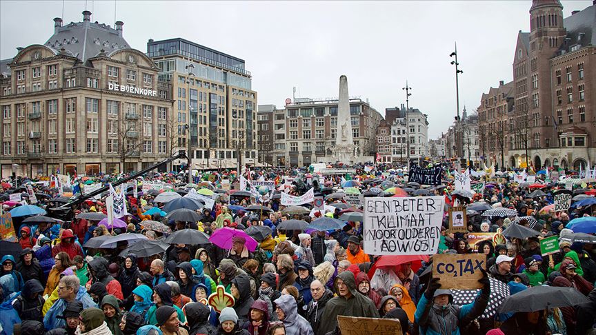 Hollanda'nın başkenti Amsterdam'da yaklaşık 35 bin kişi hükümetin iklim politikalarını protesto etti.
