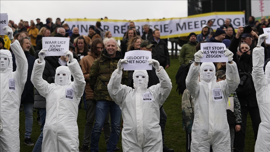 "Hollanda için Hep Beraber" kuruluşu, başkent Amsterdam'daki Müzeler Meydanı'nda Kovid-19 kısıtlamalarını protesto etti.