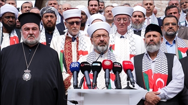 Filistin'de hayatını kaybedenler için bir dakikalık saygı duruşunda bulunan göstericiler daha sonra hep birlikte Fatiha suresini okudu.