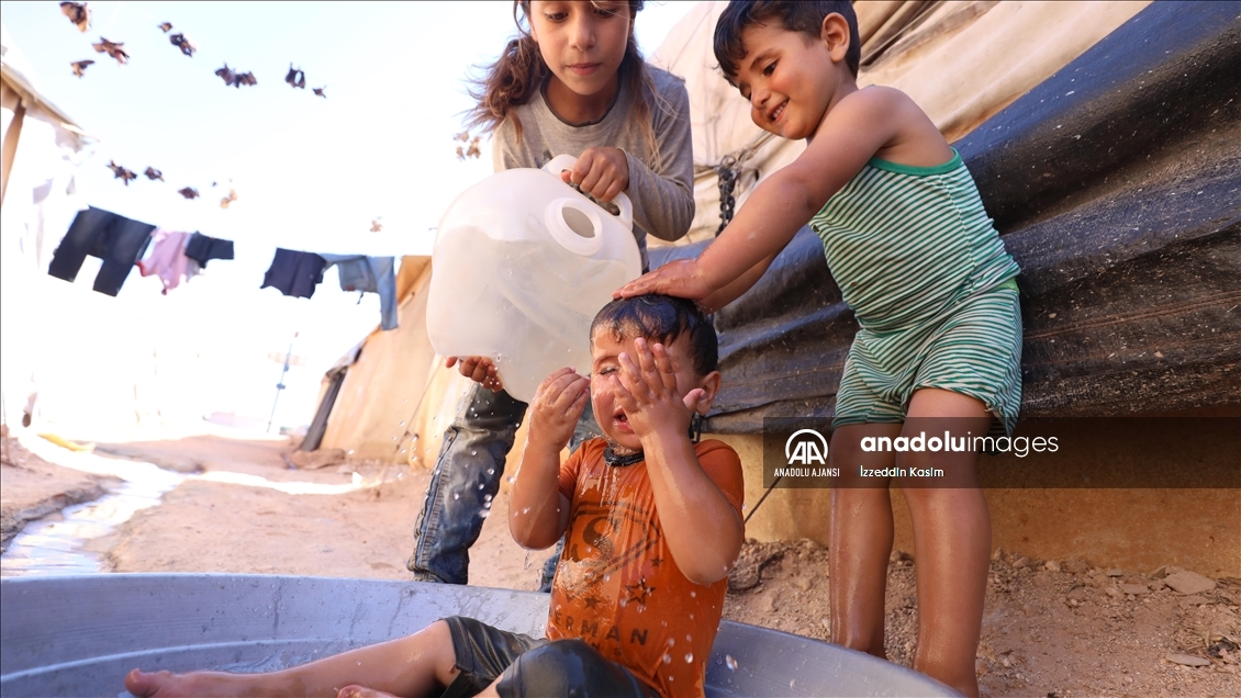 Sivillerin büyük bir kısmının derme çatma çadırlarda yaşadığı İdlib'de hava sıcaklığı gün içinde 40 derecenin üzerine çıkıyor.