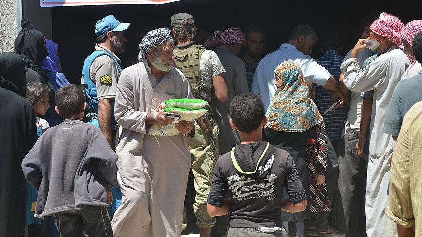 İHH'nın yardım dağıtım noktasına gelen Bab sakinlerinden Ahmed Ebu Ful, ''Bu yardımları dağıtanlardan Allah razı olsun. Allah onlara daha çok versin. Allah Erdoğan'ı başımızdan eksik etmesin. Allah ondan razı olsun. Buralar, onun sayesinde kurtarıldı.'' ifadesini kullandı.