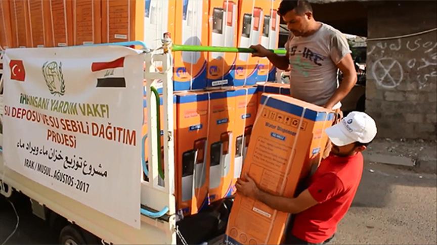İnsan Hak ve Hürriyetleri (İHH) İnsani Yardım Vakfı, Musul'da 100 aileye su deposu ve 100 aileye de su sebili yardımında bulundu.
