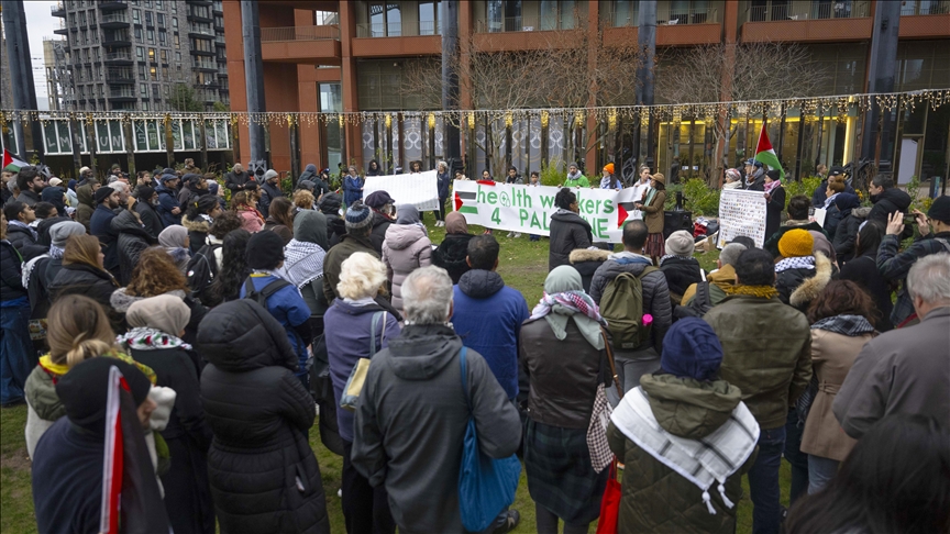 Filistin İçin Sağlık Çalışanları çağrısıyla başkent Londra'daki Gasholder Park'ta toplanan grup, düzenledikleri anma töreninde Gazze'de hayatını kaybedenler için dua etti.