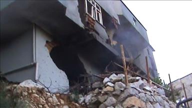 Terör örgütü yandaşı grup, binaya taş ve su şişesi gibi cisimler atarken, bir polis memuru atılan taşla bacağından yaralandı.