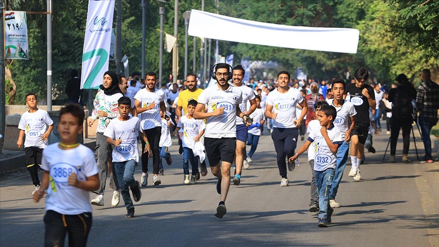 Bağdat’ın Abu Nuas Parkı’nda düzenlenen maratona yetimhanede büyüyen onlarca yetim çocuk katıldı.