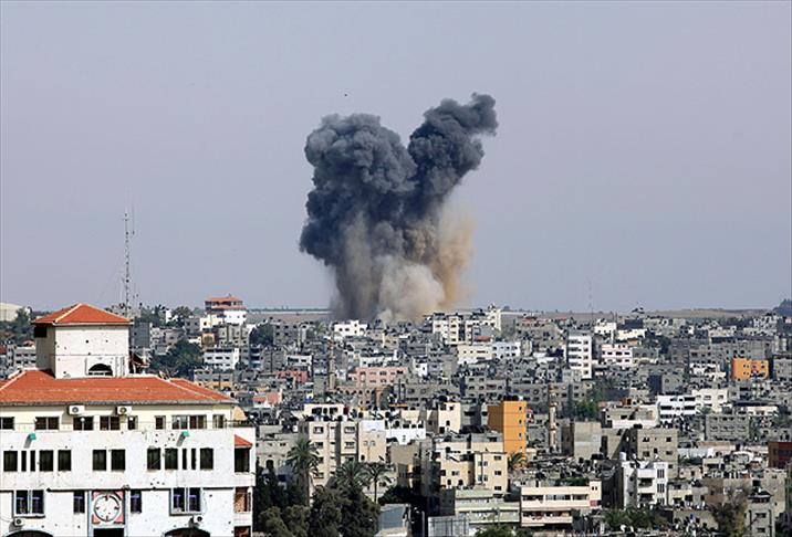 İsrail uçakları dün de Ulusal İslam Bankası'nın, Gazze'nin güneyinde bulunan Han Yunus kentindeki binasını hedef almış ve bina tamamen yanmıştı.