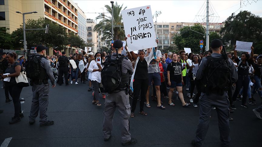 Tel Aviv’deki Azrieli Kavşağı’da toplanan çok sayıda gösterici, "Irkçılık öldürür" sloganları atarak Rabin Meydanı’na kadar yürüdü.