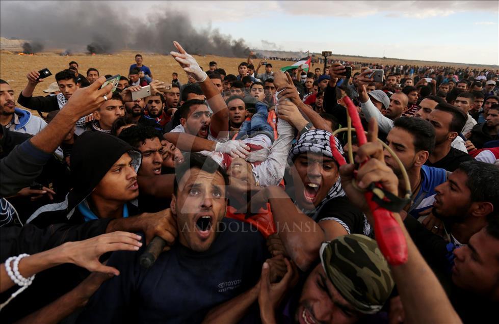 İsrail askerleri ise "sürgün edildikleri topraklarına geri dönmeyi ve 2006'dan beri Gazze'ye uygulanan hukuksuz ablukanın kaldırılmasını" talep eden sivil halkın üzerine gerçek mermilerle ateş açıyor.