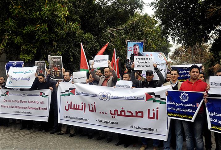 İsrail'in Filistinli gazetecilere yönelik saldırıları Gazze'de protesto edildi.