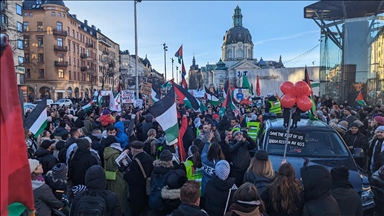 "Gazze'de çocuklar öldürülüyor", "Okullar ve hastaneler bombalanıyor", "İsrail'e soykırım ambargosu uygulansın" ve "Sonsuza kadar Filistin" yazılı pankartlar taşıyarak "Filistin'e özgürlük" sloganları atan göstericiler, İsveç Parlamentosu önüne kadar yürüdü.
