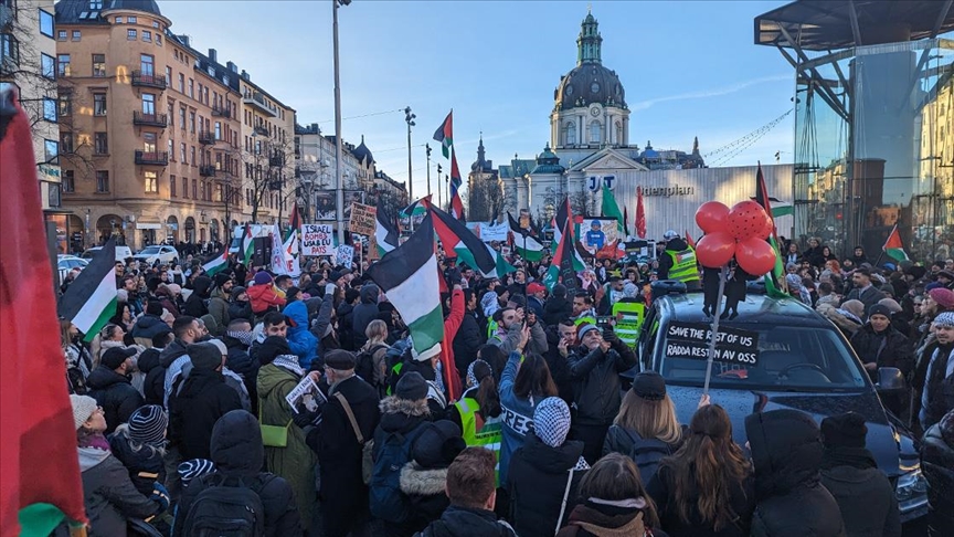 Ülkedeki çok sayıda sivil toplum kuruluşunun çağrısıyla Stockholm'deki Odenplan bölgesinde toplanan yaklaşık 15 bin gösterici, İsrail'in Gazze'de işlediği savaş suçunu durdurmasını istedi.