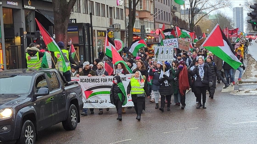 Ülkedeki çok sayıda sivil toplum kuruluşunun çağrısıyla Odenplan bölgesinde toplanan göstericiler, İsrail'in Gazze'ye düzenlediği saldırılara son vermesi, derhal ateşkes ilan edilmesi ve Gazze'ye insani yardım malzemelerinin eksiksiz girişine izin verilmesi çağrısında bulundu.