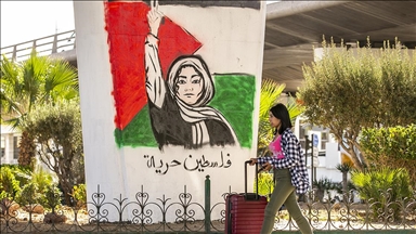 Filistin bayrağı taşıyan göstericiler, "Filistin'e özgürlük" sloganları attı.