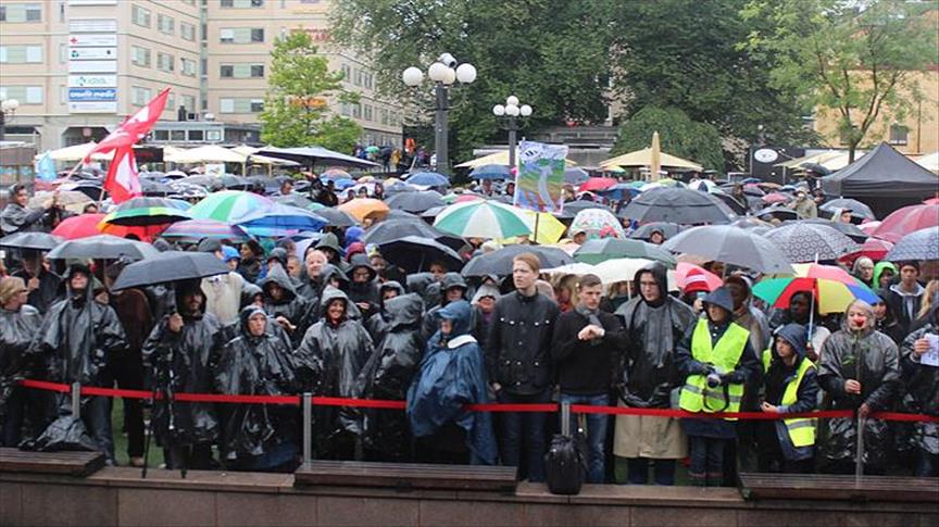 Medborgareplatsen Meydanı'nda toplanan eylemciler, mülteci kamplarındaki insanlık dışı uygulamaları ve bazı Avrupa devletlerinin sığınmacılara yönelik politikasını eleştirdi.