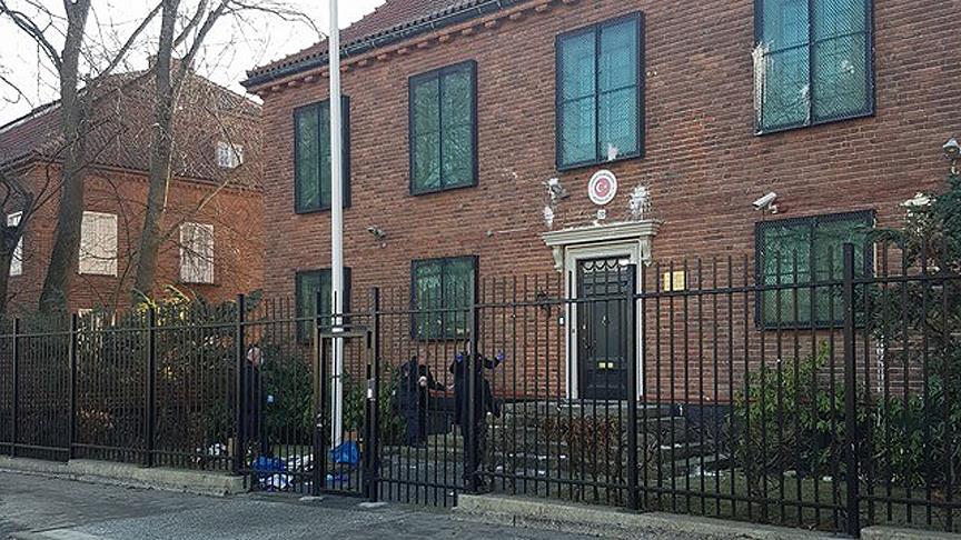 Elçilikten yapılan açıklamada, sabaha karşı gerçekleşen saldırıda, iki kişinin elçilik binasının dış duvarlarına ve avlusuna, içinde beyaz boya bulunan çok sayıda şişe attığı kaydedildi.