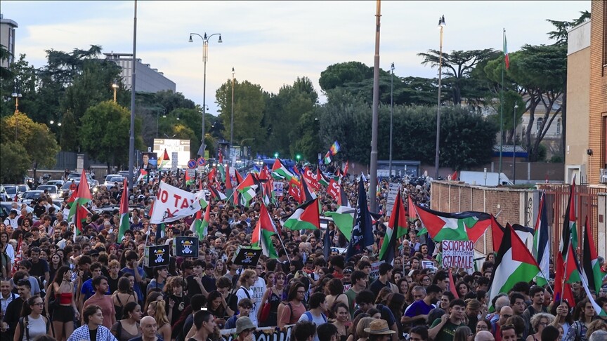 Roma dışında ülkenin pek çok kentinde İsrail’in Gazze’ye saldırıları, binlerce kişinin katıldığı gösterilerle protesto edildi.