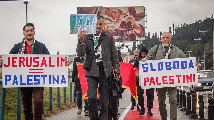 Protestoda Karadağ ve Filistin bayrakları taşıyan gelen Budo Minic de insan haklarının savunulması gerektiğinin altını çizerek, "Bugün mazlumlara destek için toplanmamızın sebebi Kudüs kararıdır. Bizler, gücün dünya genelinde zalimler tarafından kullanıldığının farkındayız." diye konuştu.