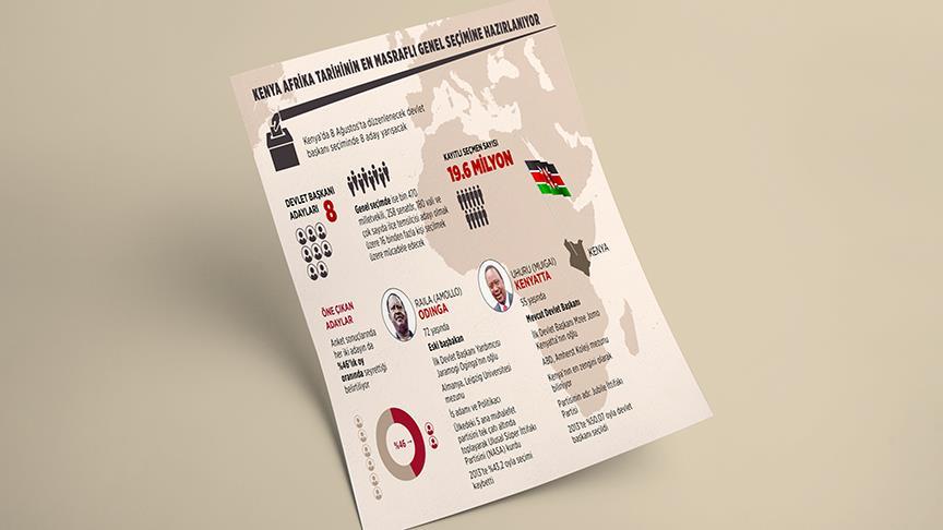 Doğu Afrika ülkesi Kenya'da halk 8 Ağustos'ta, devlet başkanının yanı sıra milletvekili, senatör, vali ve ilçe temsilcilerini belirlemek üzere sandık başına gidecek.