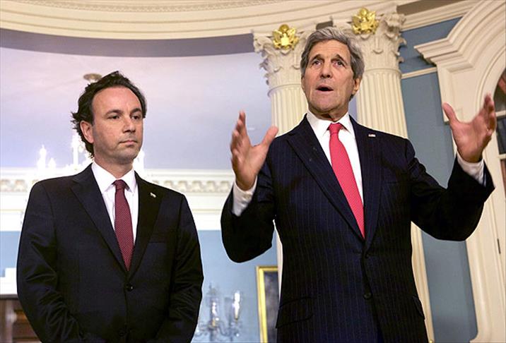 Kerry, bakanlıkta, Suriye Muhalif ve Devrimci Güçler Ulusal Koalisyonu (SMDK) Başkanı Halid Hoca ile görüştü.