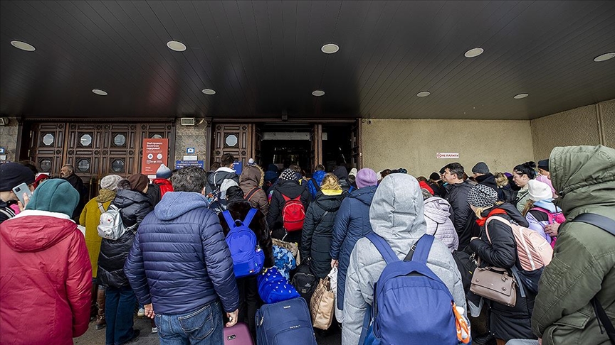 Polonya sınırına yaklaşık 70 kilometre uzaklıkta bulunan Lviv'e trenle gitmek isteyen başta kadın, çocuk ve yaşlılar olmak üzere çok sayıda Ukraynalı, evlerini ve sevdiklerini geride bırakarak tren platformunda kuyruk oluşturdu. Bazı kişilerin evcil hayvanlarını da yanlarına aldığı görüldü.