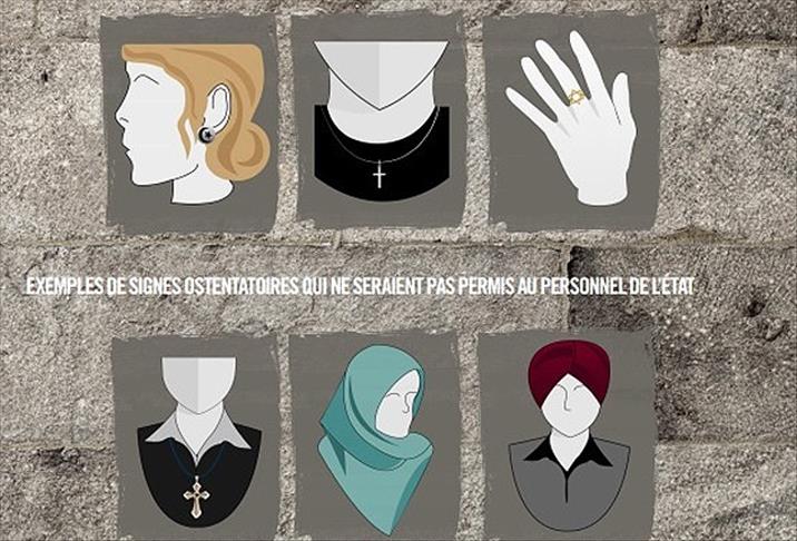Quebec Eyalet Hükümeti’nce hazırlanan ve meclise sunulan 60 sayılı tasarısının yasalaşması halinde, Yahudilerin başındaki kipa, Sihlerin türbanı, Hıristiyanların abartılı büyüklükte boyunlarına taktıkları haç, Müslüman kadınların başörtüsü ya da peçeleri, parmaklara takılan Davut Yıldızı, haç ya da bir dini simgeleyen yüzükler, kulaklara takılan küpeler ve diğer semboller kamuya ait işyerlerinde çalışanlarca kullanılamayacak.