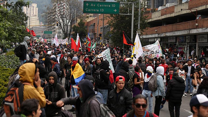 Ülkenin farklı kentlerinde düzenlenen eş zamanlı protesto yürüyüşlerine en yoğun katılım başkent Bogota’da sağlandı.