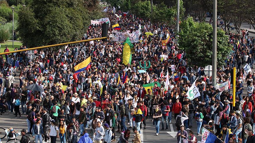 Kolombiya'nın başkenti Bogota'nın yanı sıra Medellin, Bucaramanga, Manizales, Cali, Cartagena, Neiva ve Popayan'ın da aralarında bulunduğu 35'ten fazla şehirde yapılan yürüyüşlere, işçi sendikaları, toplu taşıma ve kamyon sürücüleri, yerliler ile akademisyenler katıldı.