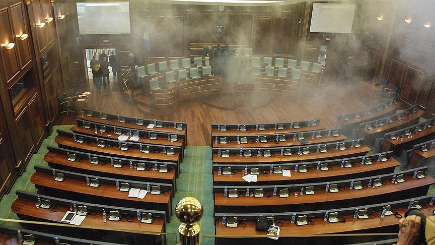 Kosova Meclisi'ndeki muhalefet milletvekilleri, iktidar ortağı partilerin milletvekillerini göz yaşartıcı gaz atarak protesto etti.