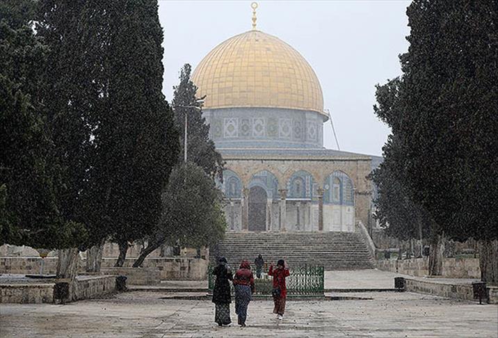 Kudüs'te yılın ilk karı düştü. Sokakların yer yer beyaza büründüğü kentte, kar yağışı sonrasında Mescid-i Aksa çevresinde güzel manzaralar oluştu.