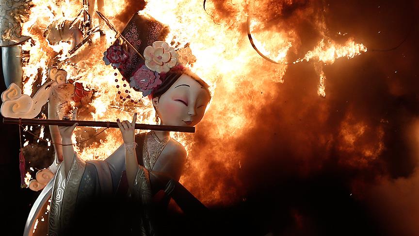 İspanya’nın Valencia kentinde düzenlenen ve geçen yıl UNESCO Dünya Kültür Mirası Listesi’ne giren Las Fallas Festivali, kent merkezindeki dev kuklaların ateşe verilmesiyle son buldu.