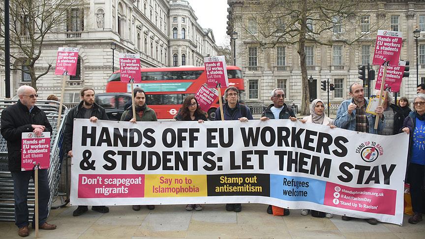 Göstericiler ayrıca İngiltere liderliğini, Brüksel ile yapılacak Brexit müzakerelerinde AB vatandaşlarını pazarlık kozu olarak kullanmaması yönünde uyarırken, Brexit'in ardından AB vatandaşlarının adada kalma ve çalışma haklarının güvenceye alınması için İngiltere Başbakanı Theresa May'e çağrıda bulundu.