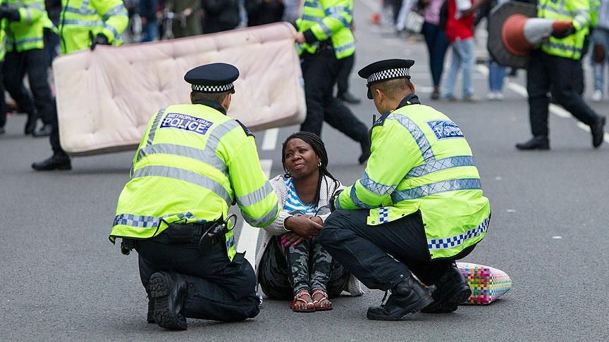 İngiltere'nin başkenti Londra'daki Kingsland Caddesi'nde geçen hafta polisin kovalaması sonucu bir dükkana giren ve burada gözaltına alındıktan bir saat sonra hastanede yaşamını yitiren Rashan Charles'ın polis şiddeti sonucu öldüğünü savunan göstericiler, olay yerinin yakınında toplandı.