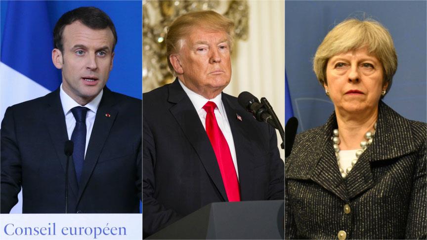 Fransa Cumhurbaşkanı Emmanuel Macron'un, ABD Başkanı Donald Trump ve İngiltere Başbakanı Theresa May ile telefonda görüştüğü bildirildi.