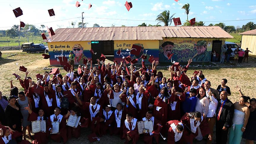 Yaklaşık 120 ailenin yaşadığı alanda hükümet, güvenlik güçleri ve yerel idarecilerin katıldığı bir tören düzenlenirken, mezun olan FARC mensupları diploma sevinçlerini törenin ardından keplerini havaya atarak gösterdi.