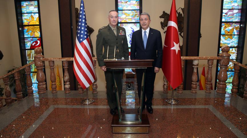 Milli Savunma Bakanlığından yapılan açıklamada, Akar'ın, Dunford ve beraberindeki heyeti kabul ettiği görüşmeye, Genelkurmay Başkanı Orgeneral Yaşar Güler'in de katıldığı bildirildi.