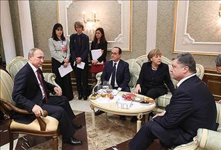 Poroşenko, Minsk uzlaşmalarının çalışacağı konusunda kimsenin tam emin olamayacağını, ancak dün sağlanan uzlaşmanın özelliğinin Üçlü Temas Grubu'nun değil, belki de dört ülkenin liderlerinin uzlaşması olmasıyla önem taşıdığını vurguladı.