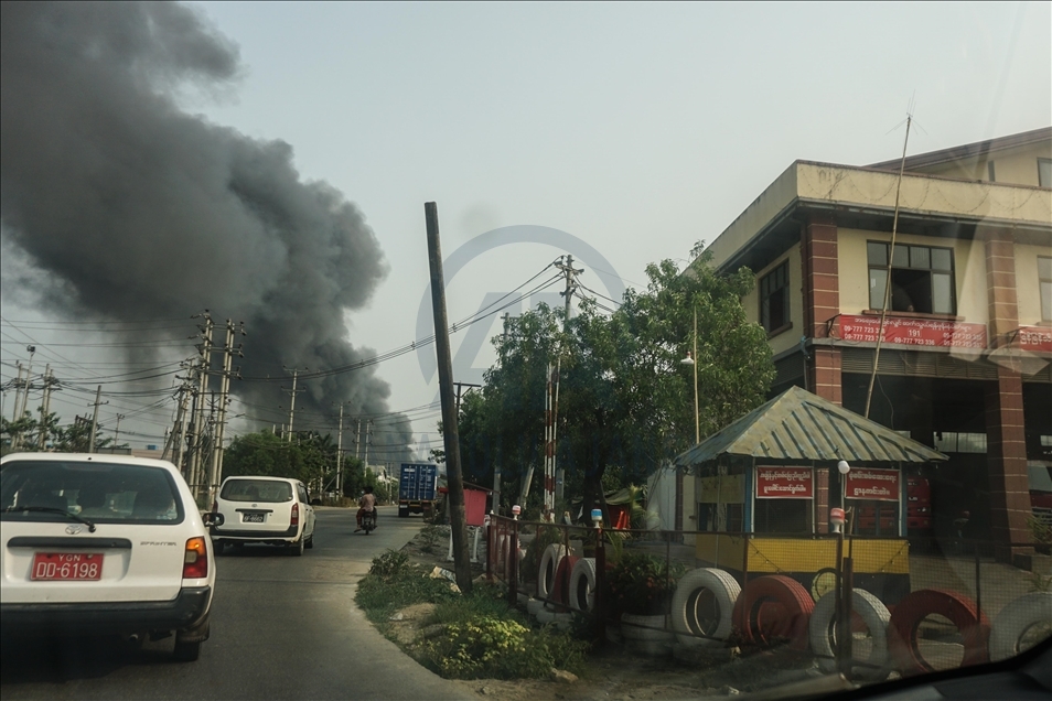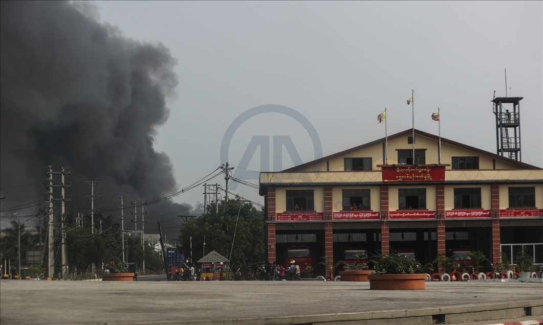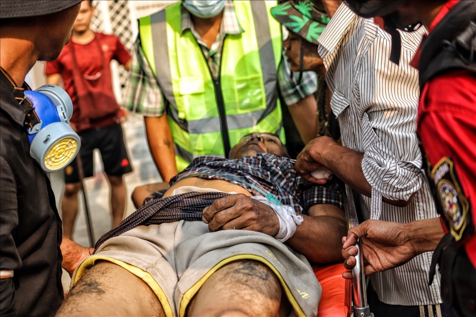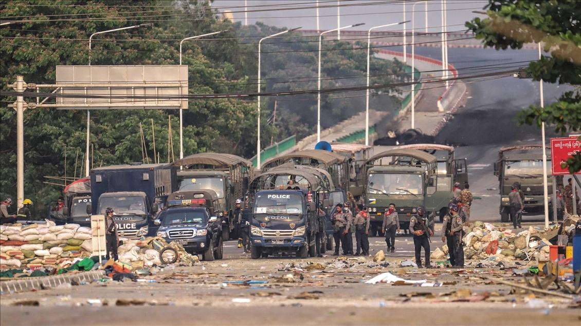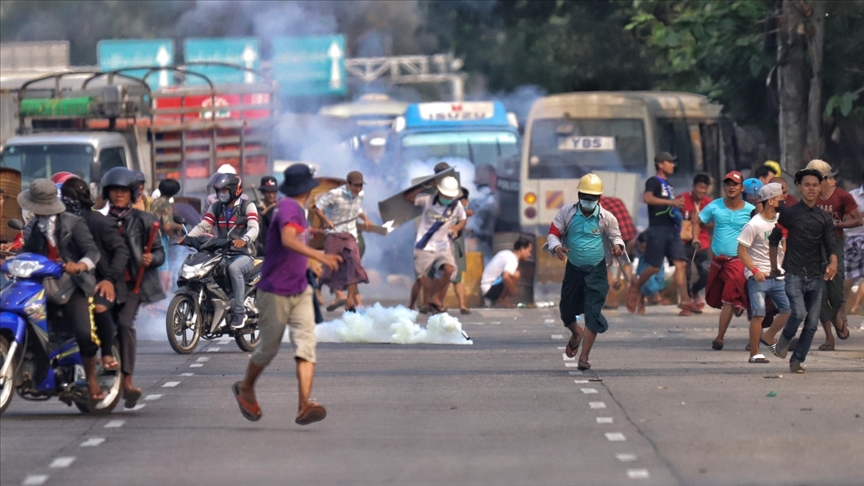 Myanmar'da askeri darbe ve seçilmiş hükümet üyelerinin gözaltına alınmasına karşı düzenlenen protestolara güvenlik güçlerinin silahlı müdahalesi sonucu en az 7 kişi hayatını kaybetti. ( Stringer - Anadolu Ajansı )