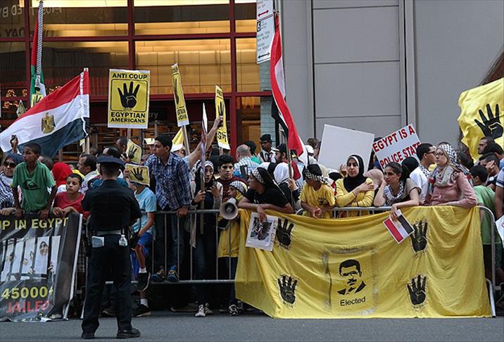 Mısır'da, Rabiatul Adeviyye ve Nahda meydanlarında darbecileri protesto ederken açılan ateş sonucu yaşamını yitirenler, olayın yıl dönümünde ABD'nin New York kentinde anıldı.