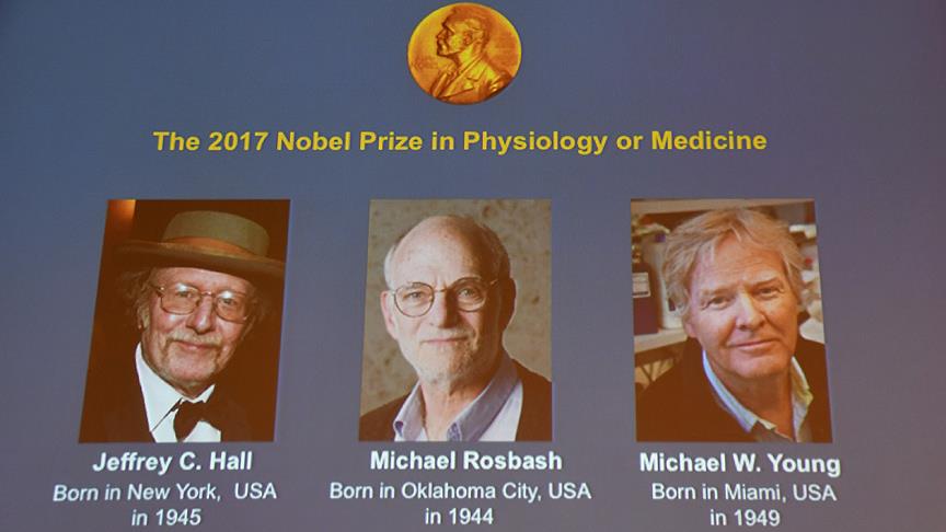 Nobel Komitesinden yapılan açıklamada, bu yılki Tıp Ödülü'nün biyolojik saat olarak da bilinen sirkadiyen ritmini kontrol eden moleküler mekanizmaları keşfeden Jeffrey C. Hall, Michael Rosbash ve Michael W. Young arasında paylaştırıldığı belirtildi.