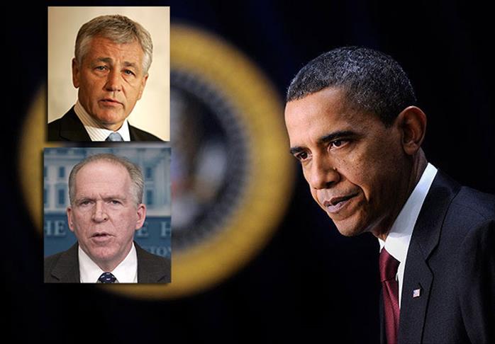ABD Başkanı Barack Obama, savunma bakanlığına eski Cumhuriyetçi senatör Chuck Hagel'i, CIA başkanlığına da Beyaz Saray Terörle Mücadele ve İç Güvenlik Danışmanı John Brennan'ı resmen aday gösterdi.