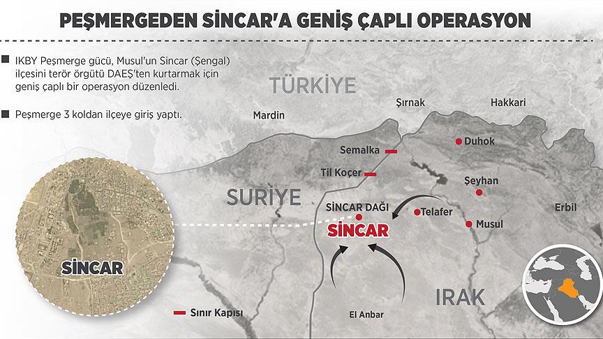 Irak Kürt Bölgesel Yönetimi (IKBY) Peşmerge gücünün, Musul'un Sincar (Şengal) ilçesini terör örgütü DAEŞ'ten kurtarmak için başlattığı geniş çaplı operasyon devam ediyor.