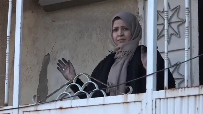 Görüntülerde, kent merkezindeki bir caddede ikinci kattaki evleri teröristlerce yakılan Suriyeli bir kadın yaşadıklarını anlattı.