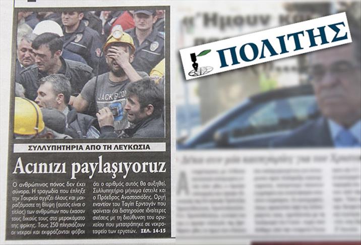 Simerini gazetesi “Türkiye yasta," Alithia “Toprağın 2 kilometre altında toplu mezar” başlıklarını atarken, Haravgi gazetesi de “Türk madencilere destek" ifadesini kullandı.
