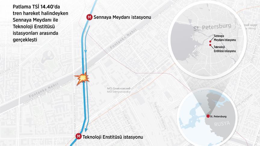 Açıklamada, patlamanın TSİ 14.40'da tren hareket halindeyken Sennaya Meydanı ve Teknoloji Enstitüsü arasında gerçekleştiği bildirildi.