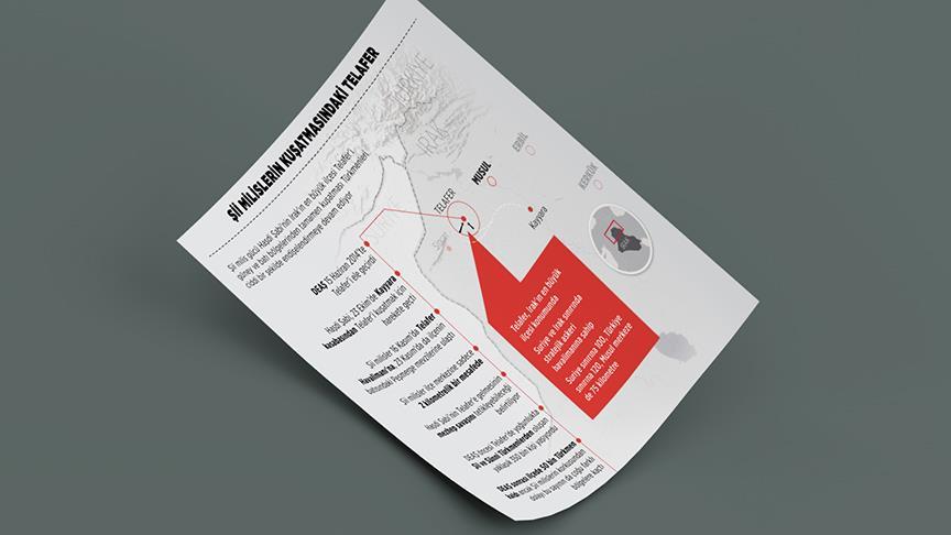Terör örgütü DEAŞ, 15 Haziran 2014 tarihinde ele geçirdiği Musul'un Telafer ilçe merkezini elinde tutmaya devam ediyor. Musul'u kurtarma operasyonu kapsamında 23 Ekim tarihinde kentin güney bölgesindeki Kayyara kasabasından Telafer'i kuşatmak için harekete geçen Şii milisler, aradan geçen bir aylık süreden sonra kenti iki bölgeden kuşattı.